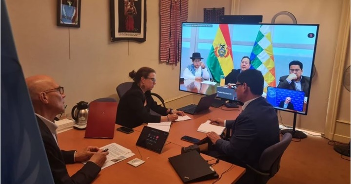 El presidente Luis Arce sostuvo una reunión de manera virtual con el alto comisionado de las Naciones Unidas para los Derechos Humanos, Volker Türk, y expuso los constantes intentos de desestabilización que enfrenta Bolivia, así como los violentos bloqueos carreteros que lidera el expresidente Evo Morales.
