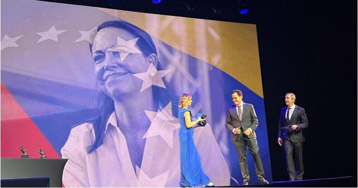 De acuerdo a un reporte del Comando ConVzla en su cuenta de X, Pedro Urruchutu, coordinador internacional de Vente Venezuela, retiró el galardón en nombre de Machado, durante la ceremonia celebrada en España.