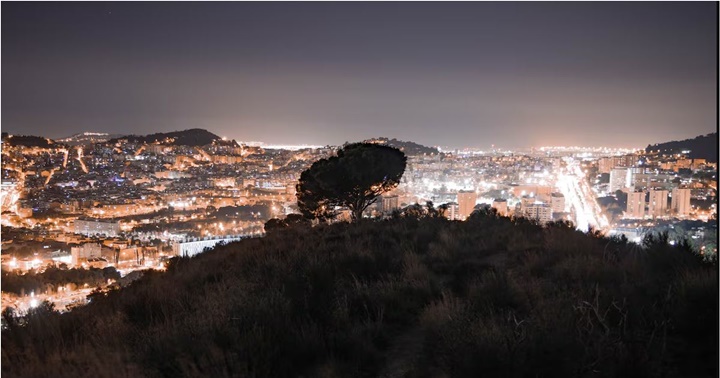 La contaminación lumínica afecta a las plantas como si fuera el sol, acelerando la brotación de las hojas y posponiendo su caída. Luces de Barcelona en España.