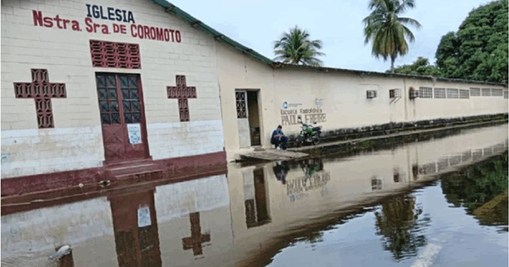 En la sede de la escuela radiofónica de Puerto Ayacucho, estado Amazonas, hay siete familias actualmente albergadas desde la semana pasada. Las aguas del gran río padre también anegaron la Escuela Paula Freire y Nuestra Señora de Coromoto Amazonas.