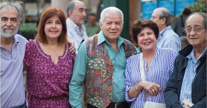 Manolo Reverón de chaqueta azul con unos amigos.