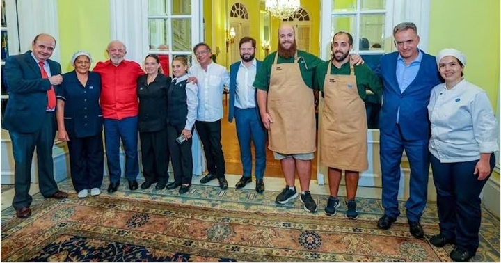 Este lunes, en La Moneda, tendrá lugar la cumbre Democracia Siempre, el evento internacional más ambicioso del Presidente Gabriel Boric, que lo reunirá con sus pares de Brasil, Lula da Silva; de España, Pedro Sánchez; de Uruguay, Yamandú Orsi, y de Colombia, Gustavo Petro. El chef Juan José Etchevarne con Boric, Lula, Petro y Orsi.