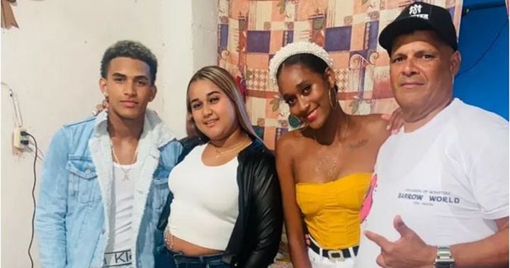 Ángel Gabriel (a la izquierda), Mirbelis (a su lado) y el padre de ambos (a la derecha) juntos en una fotografía familiar. Mirbelis González entra en una celda de barrotes sin luz natural, retrete ni agua corriente cada miércoles por la mañana.