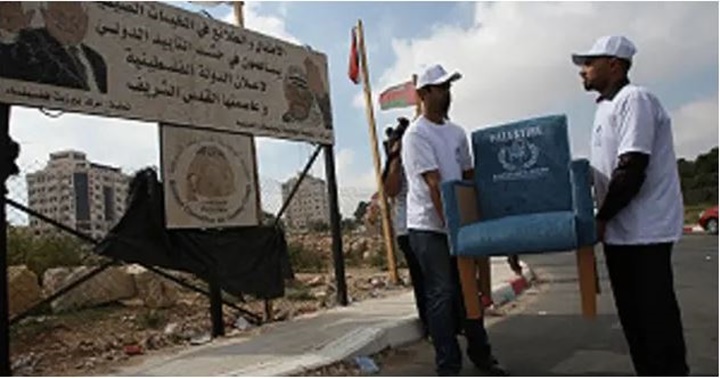 Una silla que pretendía representar un asiento propuesto en las Naciones Unidas para Palestina.