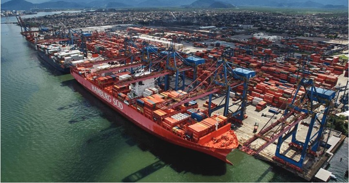 Como parte del plan, el gobierno también planea comprar productos a los exportadores afectados por los aranceles. El puerto de Santos en Brasil.
