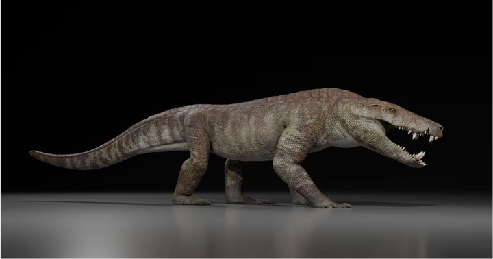 El hallazgo en Argentina de los restos fósiles de una especie extinta de peirosáurido confirma las conexiones biológicas entre América del Sur y África, cuando ambos estaban unidos en un mega continente. Reconstrucción digital de cómo se vería un ejemplar de ‘Kostensuchus atrox’ de tres metros de largo.
