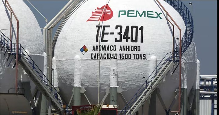México necesita US$30.000 millones para plan petroquímico de Pemex, pero lo arriesga con sobrerregulación: empresas. Las siluetas de los asistentes se ven frente a tanques de almacenamiento de amoniaco anhidro durante un evento para celebrar el aniversario de la expropiación de la industria petrolera mexicana en el complejo petroquímico de Petróleos Mexicanos (Pemex) en Cosoleacaque, Veracruz, México.(Bloomberg/Susana Gonzalez)