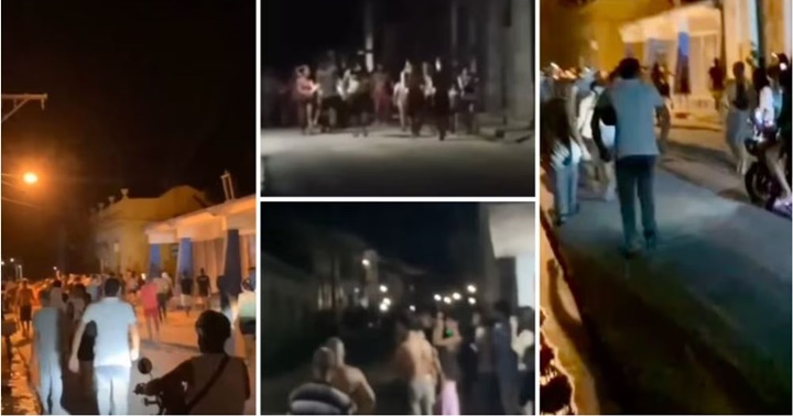En un video, a pesar de la oscuridad, se perciben decenas de personas fuera de sus casas y se escucha el cacerolazo. Todo el día sin corriente, la pusieron 30 minutos y nada, lamenta el hombre. En otra filmación se ve a varios manifestantes defendiendo a unos jóvenes de ser arrestados por un policía: ¡Al pueblo no!, gritan. Eso es lo que hace falta aquí, dice una voz de mujer en otro video. La escena ocurre en una de las calles principales de la localidad que está, sorprendentemente iluminada mientras el resto de Gibara se mantiene a oscuras. El pueblo unido jamás será vencido, fue otra de las consignas que coreaban los vecinos y que quedaron registradas en imágenes difundidas en Facebook.