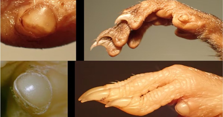 La mayoría de los ‘Rodentia’ tienen una uña en el pulgar en vez de garras con la que consiguen manipular alimentos. Uñas de la ardilla pigmea africana (arriba) y una rata rayada de Luzón (abajo).