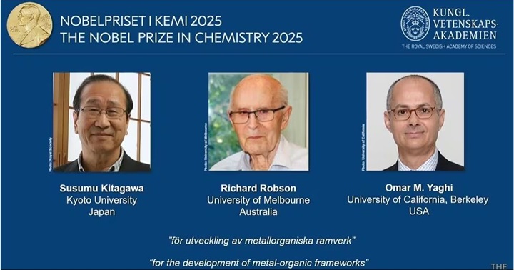 La Real Academia Sueca de Ciencias ha decidido otorgar el Premio Nobel de Química 2025 a Susumu Kitagawa, de la Universidad de Kioto, Japón); Richard Robson, de la Universidad de Melbourne (Australia); y Omar M. Yaghi, de la Universidad de California (Estados Unidos), por el desarrollo de estructuras metalorgánicas.