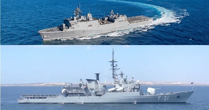 La Fragata misilística F-22 ARV Almirante Brión y la Fragata misilística F-21 ARV Mariscal Sucre, pertenecientes a Venezuela.