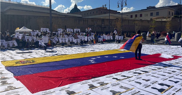 Decenas de venezolanos se congregaron este sábado 18-10-2025, en las calles de Roma, cerca del Vaticano, para exigir la liberación de los presos políticos en su país, en la víspera de la canonización de los dos primeros santos venezolanos: el médico José Gregorio Hernández y la religiosa Carmen Rendiles. Los manifestantes se concentraron en la céntrica plaza del Risorgimento, donde cubrieron el suelo con fotografías de los presos bajo el lema «una canonización sin presos políticos» y exigieron la liberación de hasta 900 personas