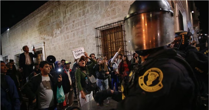 Las guerras se ganan con acciones, no con palabras. El presidente interino de Perú afirma que el Gobierno pasará “de la defensiva a la ofensiva en la lucha contra el crimen”. El decreto autoriza a las Fuerzas Armadas a actuar contra los manifestantes. Protestas en contra de José Jerí en Arequipa, Perú, el 15 de octubre