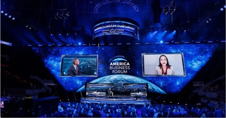 La líder opositora venezolana y Premio Nobel de la Paz, María Corina Machado, afirmó este martes en una videoconferencia en Miami que si se libera Venezuela, se liberan también Cuba y Nicaragua, durante su participación en el América Business Forum, un encuentro de líderes empresariales y políticos.