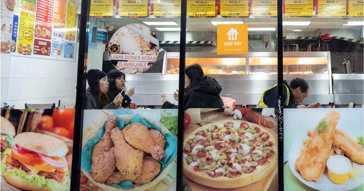Un centenar de estudios denuncia cómo la industria alimentaria amenaza la salud pública. Unos clientes en un restaurante de comida rápida, en Birmingham (Inglaterra) en 2023.