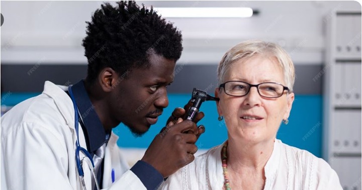 Varios expertos aconsejan a los adultos hacerse revisiones periódicas y no esperar a tener problemas graves de comunicación para buscar solución. Un médico otorrinolaringólogo examina el oído de un paciente mayor con un otoscopio.