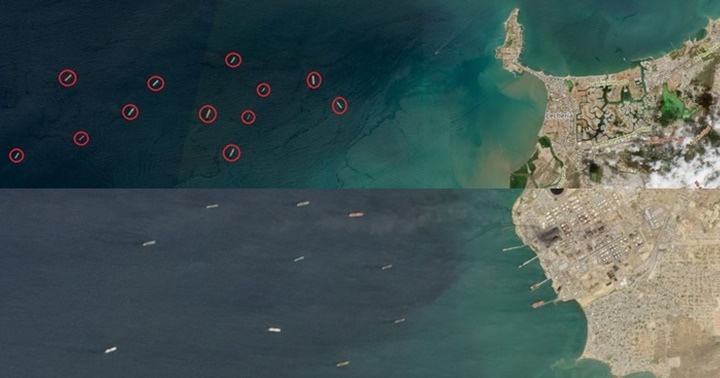 Fotografías capturadas recientemente por los satélites Copernicus Sentinel-2 de la Agencia Espacial Europea (ESA, por sus siglas en inglés) evidencian a decenas de tanqueros paralizados frente a los principales puertos administrados por Petróleos de Venezuela (Pdvsa).