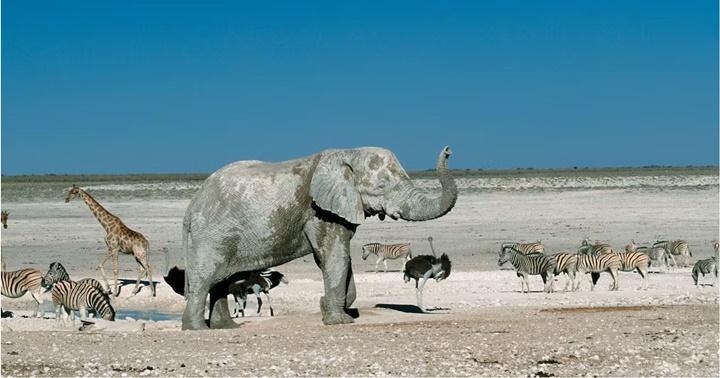 Un estudio conecta la disponibilidad de sodio con la mayor o menor abundancia de grandes herbívoros. La fauna africana acude a lugares con concentraciones de sodio, como en el parque nacional Etosha, una enorme salina en Namibia, a la que pertenece esta imagen.