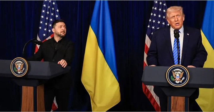 Los presidentes de Estados Unidos, Donald Trump (derecha), y de Ucrania, Volodimir Zelenski, ofrecieron una conferencia de prensa luego de su reunión.
