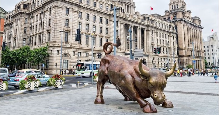 El gasto de los consumidores y la inversión empresarial siguen siendo flojos, ya que la debilidad del mercado laboral y la caída de los precios de la vivienda lastran la demanda interna. La estatua del Toro del Bund en Shanghái.