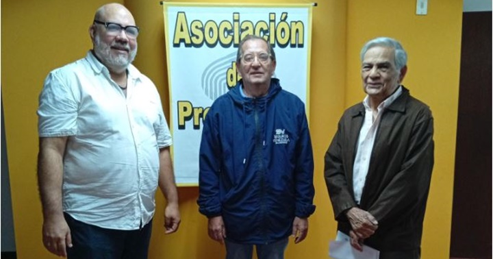 El presidente de la Asociación de Profesores de la Universidad Simón Bolívar Omar Pérez Avendaño (Centro) se pronunció en esta oportunidad para anunciar el pleno respaldo de esa organización a la propuesta de su colega y secretario de asuntos laborales, William Anseume ( Izquierda) (Derecha), en cuanto a resarcir el daño laboral causado a los trabajadores todos estos años y Alexis López, presidente ejecutivo de IPP (Derecha).
