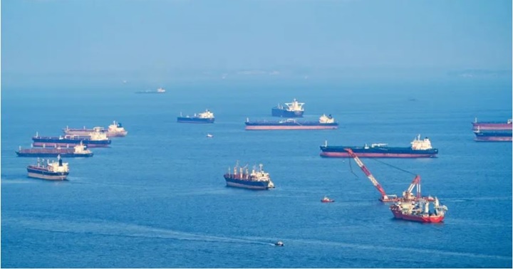 El barril de Brent avanza casi un 8% y supera los 78 dólares, un precio que los analistas anticipan que puede escalar en torno a los 90 dólares. El gas en Europa sube cerca del 20%. Barcos en el estrecho de Ormuz.